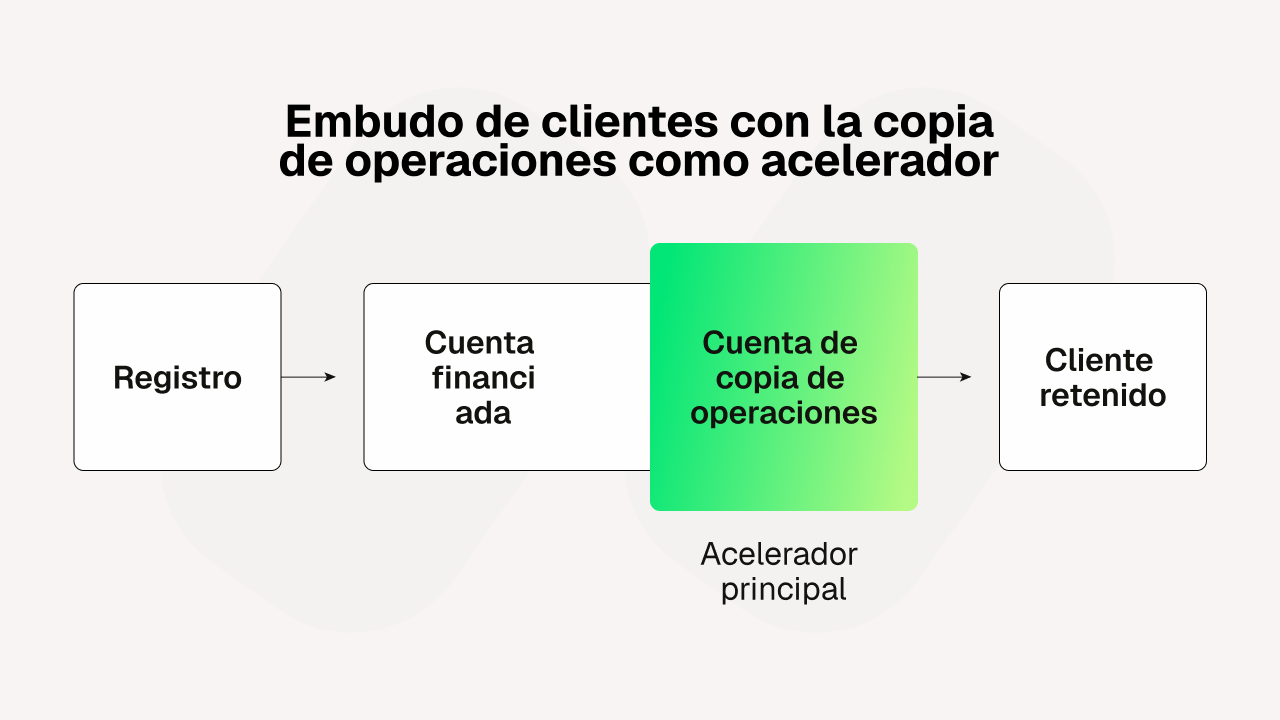 El éxito se mide por el número incremental de cuentas de copia de operaciones financiadas y también por mejores tasas de conversión de demo a real, una progresión más sólida de real a primer depósito, y el volumen de operaciones adicional que esas cuentas generan con el tiempo.