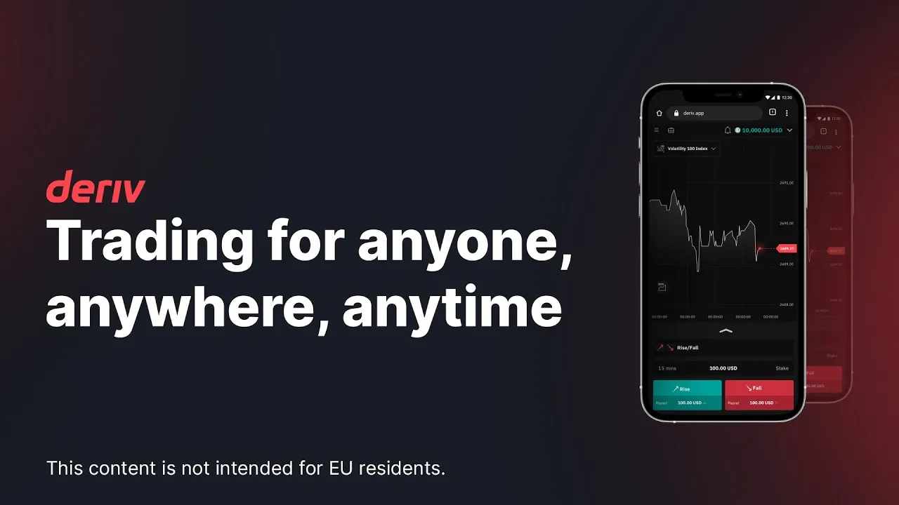 Deriv adalah broker terkemuka dengan pengalaman 25 tahun, melayani lebih dari 2,5 juta klien di seluruh dunia. Deriv menawarkan trading dalam Forex, Komoditas, Logam Mulia, Indeks Saham, Saham, ETF, dan Indeks Derivatif eksklusif. Mereka berkomitmen untuk memberdayakan trader dengan harga kompetitif, dukungan yang andal, dan sumber daya edukasi yang komprehensif.