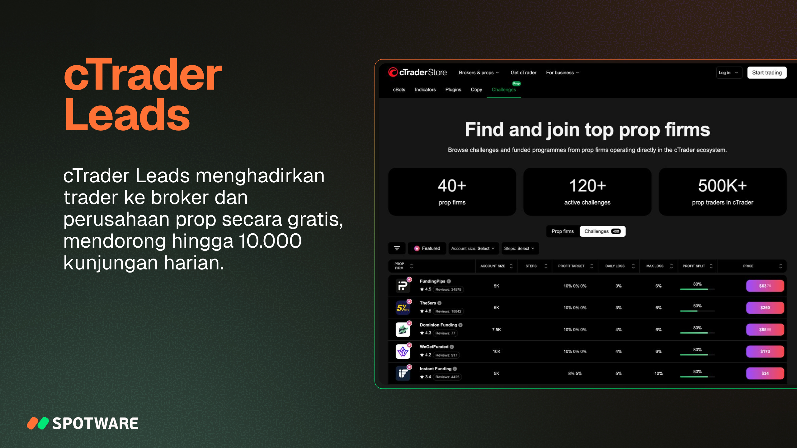 - cTrader Leads menghadirkan trader ke broker dan perusahaan prop secara gratis melalui hingga 10.000 kunjungan harian