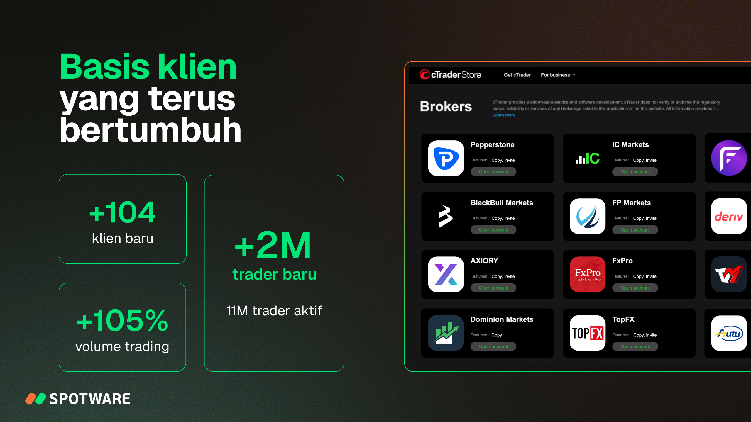 - Pertumbuhan volume trading cTrader sebesar 105%
