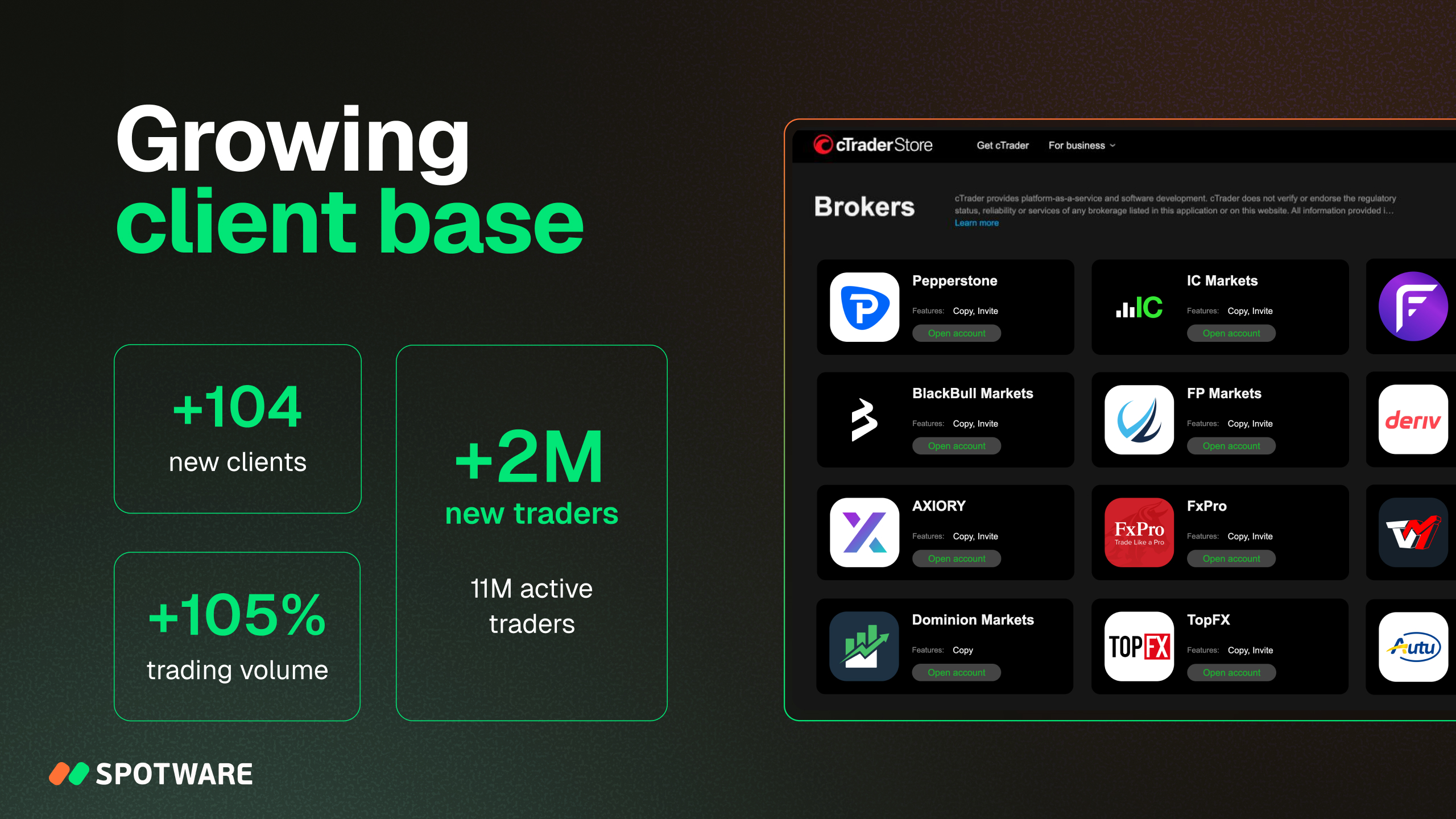 - 105% growth in trading volume for cTrader
