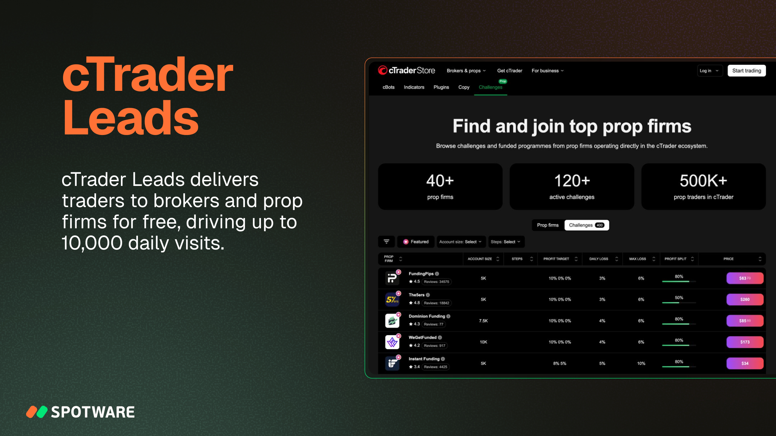 - cTrader Leads delivers traders to brokers and prop firms for free through up to 10,000 daily visits