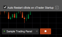 To demonstrate the usage of custom UI elements, we have further added a cBot sample - Sample Trading Panel, which lets users observe an operational example of the platform’s new feature.