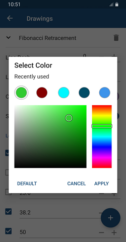 Drawings & Indicators can now take on any custom color of the trader’s choosing.