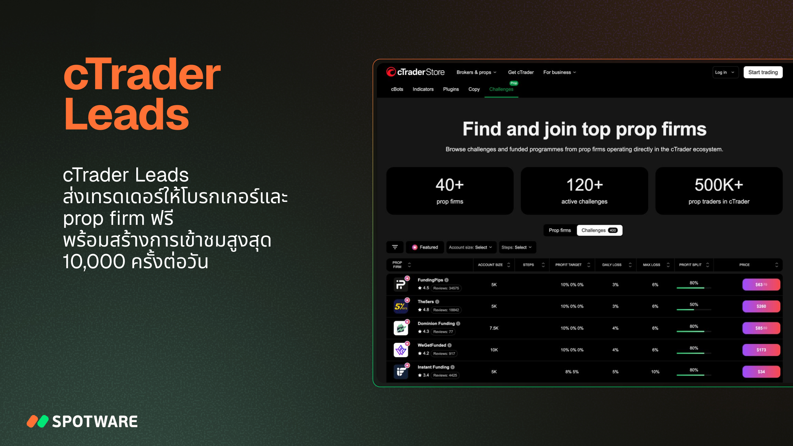- cTrader Leads นำนักเทรดไปยังโบรกเกอร์และ Prop Firm ฟรีผ่านการเข้าชมสูงสุด 10,000 ครั้งต่อวัน