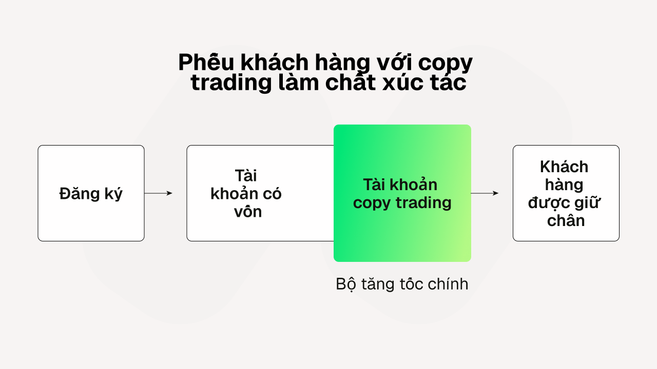 Nhiều nhà môi giới gặp phải các thách thức chuyển đổi ở giai đoạn đầu tương tự. Người dùng bị mắc kẹt ở chế độ demo và những người đã đăng ký tài khoản thực nhưng chưa thực hiện khoản nạp tiền đầu tiên. Copy trading cung cấp cho các nhà môi giới một cách thức thực tế hơn để giải quyết cả hai khoảng cách này. Đối với người dùng demo, nó làm giảm rào cản tâm lý khi chuyển sang giao dịch thực bằng cách thay đổi thông điệp từ “giao dịch độc lập ngay từ ngày đầu tiên” sang “bắt đầu với một chiến lược có cấu trúc, thống kê rõ ràng và kiểm soát rủi ro được xác định”. Đối với người dùng tài khoản thực, nó tạo ra một lý do mạnh mẽ hơn để nạp tiền vào tài khoản, bởi vì khách hàng không chỉ mở một hồ sơ thực một cách chung chung mà còn phân bổ vốn vào một chiến lược mà họ có thể theo dõi ngay từ đầu.