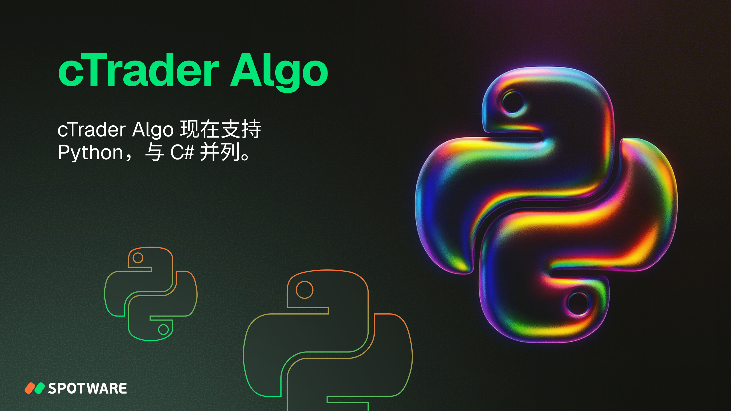 2025 年,cTrader 在 cTrader Algo 中引入了行业领先的原生 Python 支持 ,用于算法开发。 Python 现在是 cTrader Algo 支持的第二种语言,与 C# 并列。